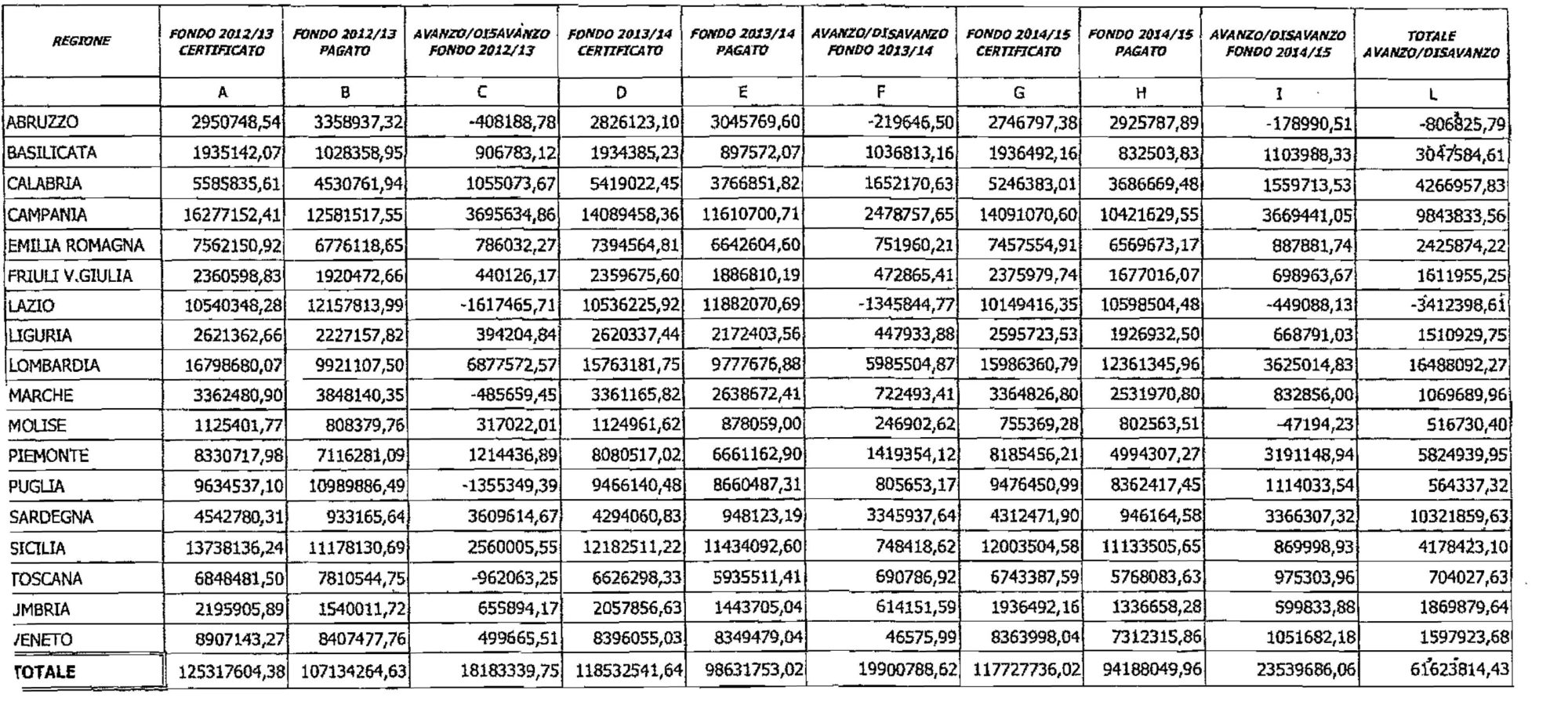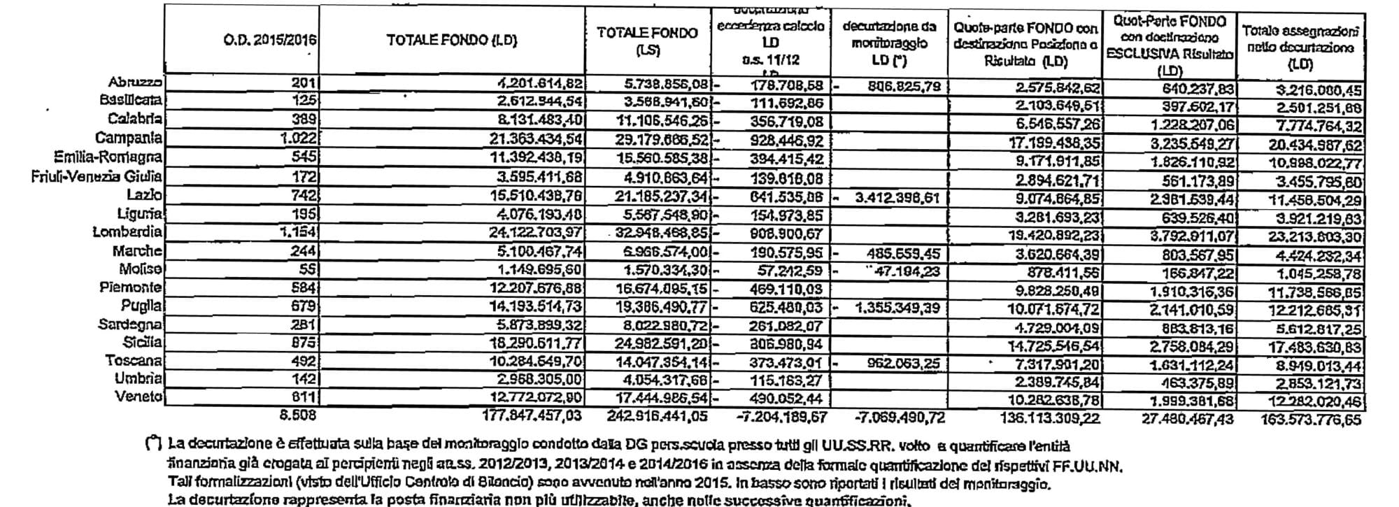 Si coglie l’occasione per ricordare che, avverso la decurtazione per il 2012-13, è incardinata al TAR del Lazio una causa contro l’Amministrazione. In merito ai 7 milioni sottratti al Fun 2015-16 (tabella 2) per ripianare un presunto disavanzo del 2011-12 stiamo valutando le azioni più idonee.