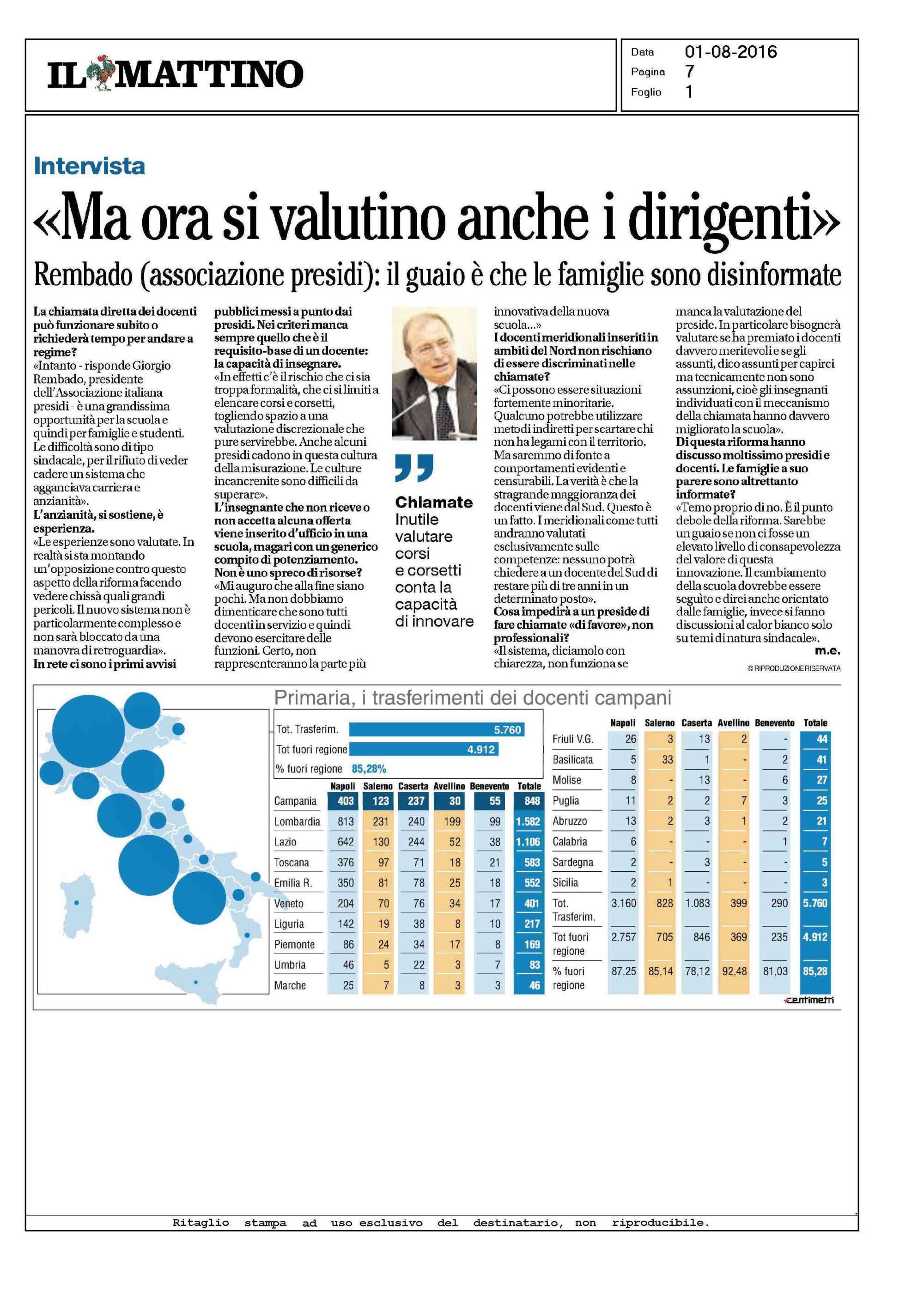 Uncategorized Il Mattino – Intervista a Giorgio Rembado By M4ster@Anp - 1 Agosto 2016 0 8 FacebookTwitterPinterestWhatsApp Qui di seguito si può leggere l’intervista a Giorgio Rembado comparsa su «Il Mattino» di oggi.