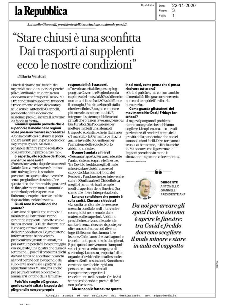 Con una intervista a Repubblica, il Presidente dell’ANP ha riportato la scuola al centro del dibattito e ha chiarito quali siano le condizioni per riaprire in sicurezza.