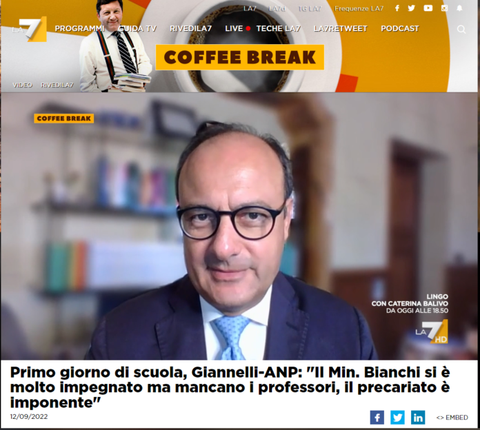 Inizio anno scolastico: il Presidente ANP a Coffee Break La7 e la rassegna stampa