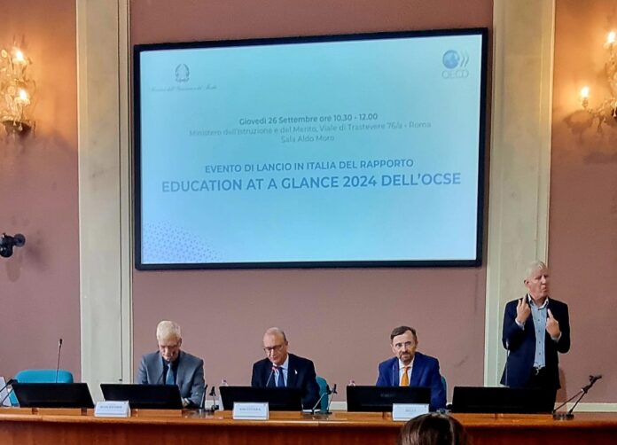 Oggi, 26 settembre 2024, presso il Ministero dell’Istruzione e del Merito, è stato presentato il rapporto dell’OCSE “Education at a glance 2024” che descrive lo stato e lo sviluppo dei sistemi di istruzione nei paesi aderenti all’organizzazione internazionale (Organizzazione per la Cooperazione e lo Sviluppo Economico). Il rapporto per l’Italia è stato presentato dal ministro Valditara e dal direttore della ricerca dott. Andreas Schleicher.