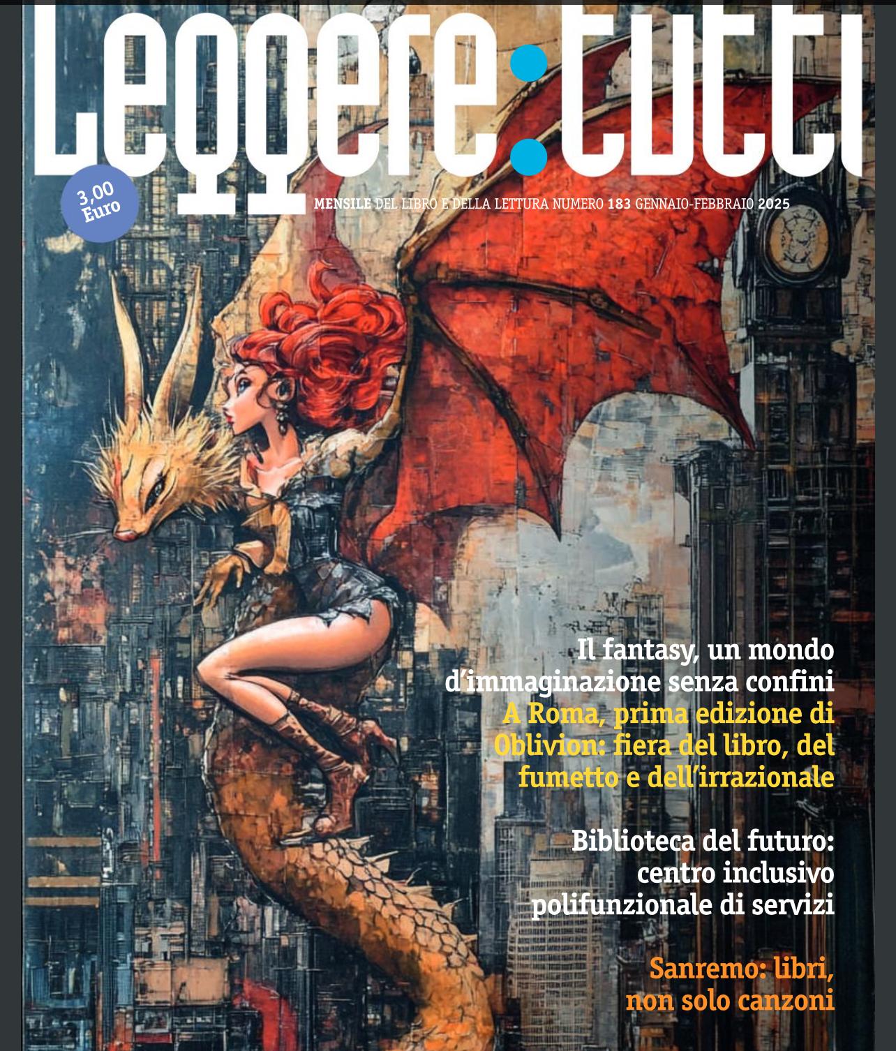 Disponibile, per i soci ANP, il numero di gennaio-febbraio di Leggere:tutti. Firmato dalla nuova direttrice Patrizia D’Attanasio, è dedicato al fantasy, genere che sta riscuotendo notevole interesse. Non mancano altri interessanti servizi, segnalazioni, recensioni e la sezione Leggere:tutti Junior.